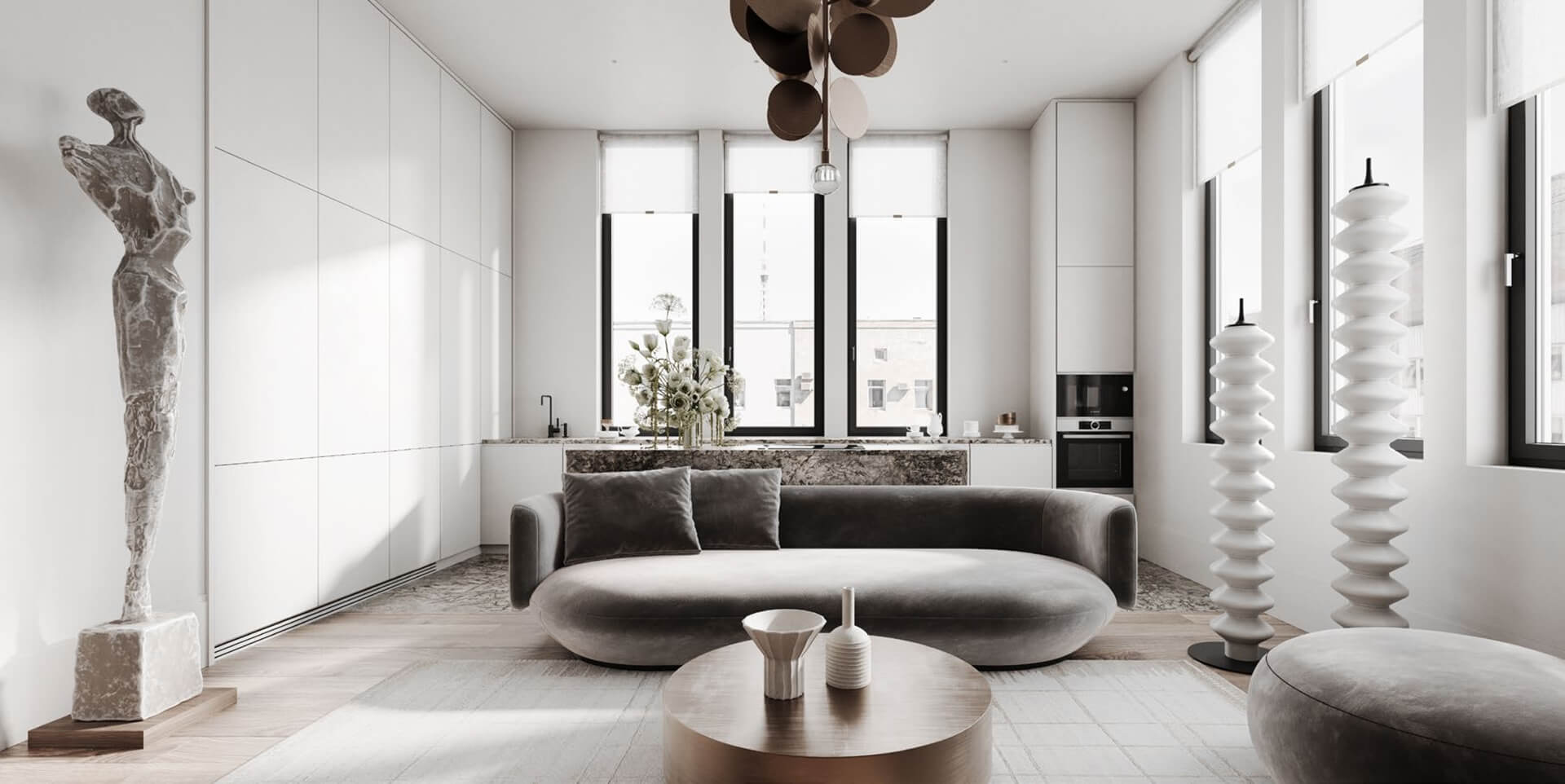 Лобби служит точкой пересечения и местом общения жителей. Это пространство, где искусство становится частью повседневной жизни, а каждая деталь подчёркивает статус проекта.