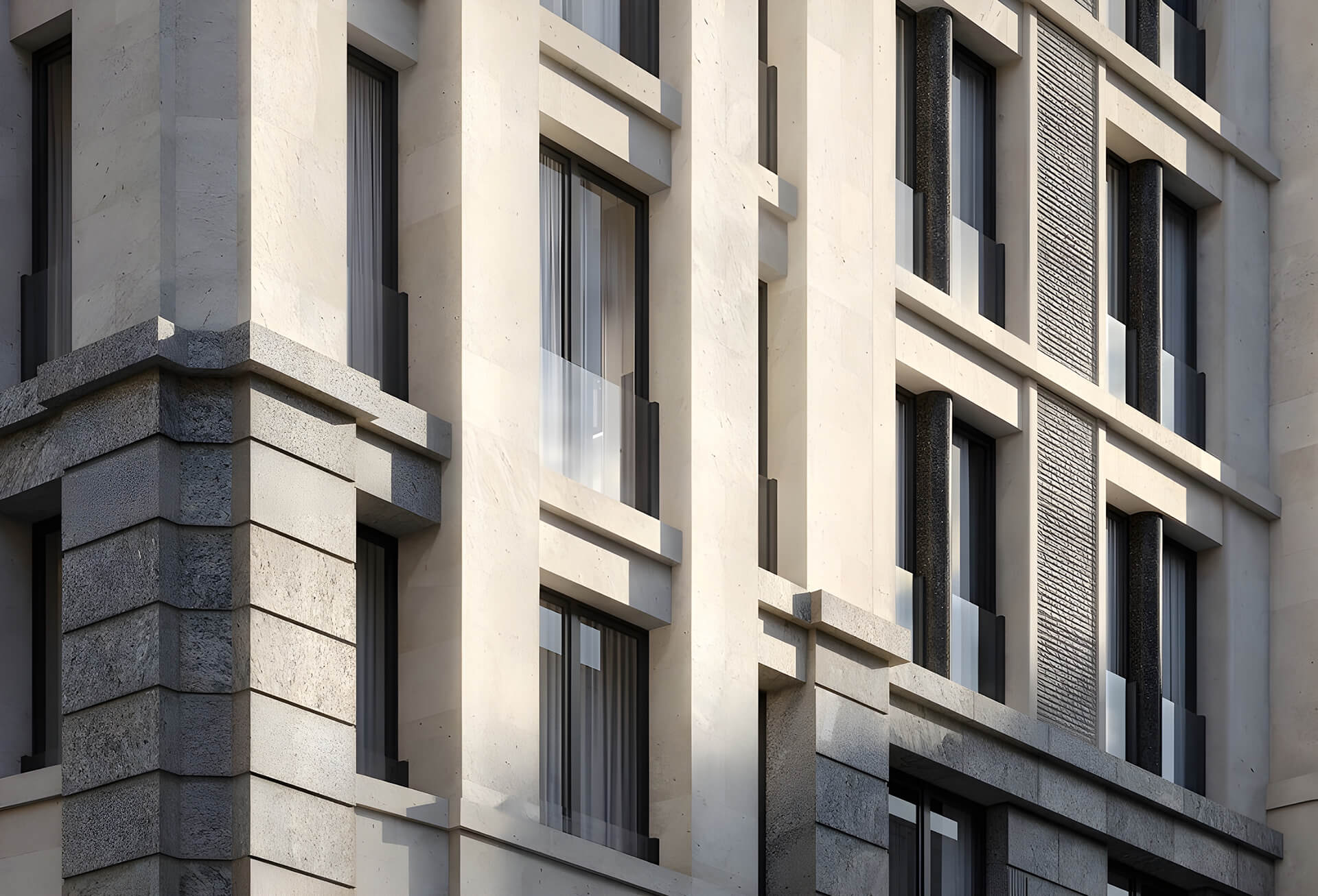Архитектура «Коллекционера» — это эклектика как искусство. Проект от студии «Проектная культура» сочетает элементы разных эпох, создавая многослойное пространство, которое выглядит современно и в то же время уважает исторический контекст. Стройные пропорции окон, русты и эркеры формируют атмосферу торжественности, а башни и люкарны придают дому характер и узнаваемость.